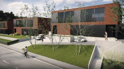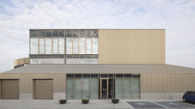 Tekst: Goddeeris NV had been growing so fast in recent years that moving to a new location was the only option. The building programme for the company – which installs HVAC and industrial piping – included office space for management plus social areas for the entire team, a warehouse and workshop and a covered car park. This project employed steel in a variety of forms and applications: profiled sheet mounted on sandwich panels or a frame in the facade finish; frames for the mounting of the facade finish made of tubes and profiles affixed to the main structure and with faceted rounded parts; porticoes made of steel profiles as the main structure for office and workshop; trusses made of profiles and tubes for the roofing of the carport; roof deck made of profiled panels finished with insulation and roof sealing; monocoques for staircases and mezzanines in offices made of bent 10 mm steel sheets welded together on site.