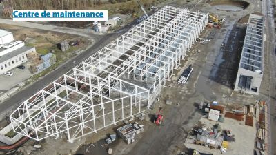 Tekst: By 2022, a tram serving 23 stops will be running in Liège. The maintenance centre, washing facility, tram depot and park and ride car park to support this have been realised on the Bressoux site at one end of the route. The 4,200 m² maintenance centre comprises a steel structure weighing around 300 tonnes, with portals supporting walkways and maintenance passages. The 3,900 m² depot is 234 metres long, weighs 150 tonnes and is made up of steel girders resting on a steel column on one side and anchored to the concrete building of the park and ride car park on the other. The washing facility comprises concrete walls topped with steel columns and girders that in turn support the roof plates and glass domes. Steel parapets and walkways complete the picture. Steel was an obvious choice, not only because of its economic and aesthetic properties, but also because it is quick and easy to install.