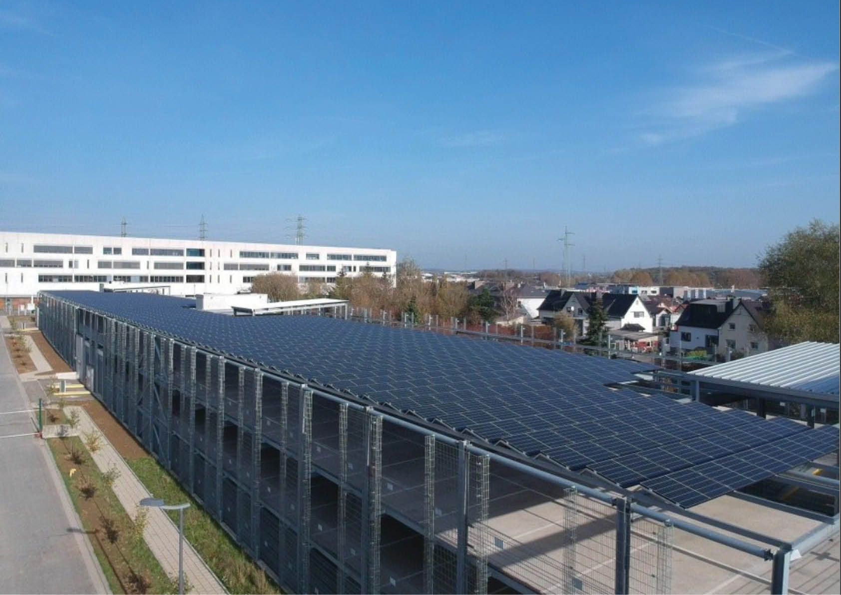 Equipé de 772 panneaux photovoltaïques installés en toiture et directement connectés au réseau, ce parking silo produit l’équivalent en électricité nécessaire à l’approvisionnement de 93 ménages pendant toute une année. Le choix de l’acier s’imposait car ce matériau répondait pleine­ment aux demandes du client pour une construction rapide et de l’architecte qui souhaitait une grande liberté architecturale, ainsi que des matières recyclables, légères, transparentes tout en prenant en compte des paramètres de confort tels que lumière, convivialité et durabilité environnementale. La partie porteuse est constituée de poteaux et de poutres en acier profilés à chaud. Tous les composants sont fabriqués sur mesure. Les trous pré-percés et les connexions bou­lonnées permettent un montage rapide et précis sur chantier. Les solives offrent des portées libres de 16 m. L’espace ainsi libéré permet de se garer aisé­ment sans être dérangé par des poteaux et d’ouvrir les portières facilement.