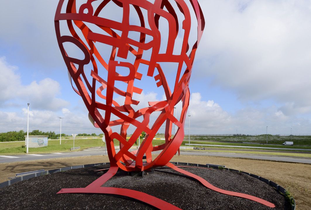 Une sculpture métallique rouge, œuvre du sculpteur bruxellois Robin Vokaer, marque désormais l’entrée de Flémalle sur le rond-point situé à proximité de l’autoroute. Cette réalisation de près de 2,5 tonnes, se compose de tôles oxycoupées d’une épaisseur de 8 mm. Utilisant des matériaux emblématiques de la commune, elle rappelle le passé et dépeint le présent de la vie économique de la cité.