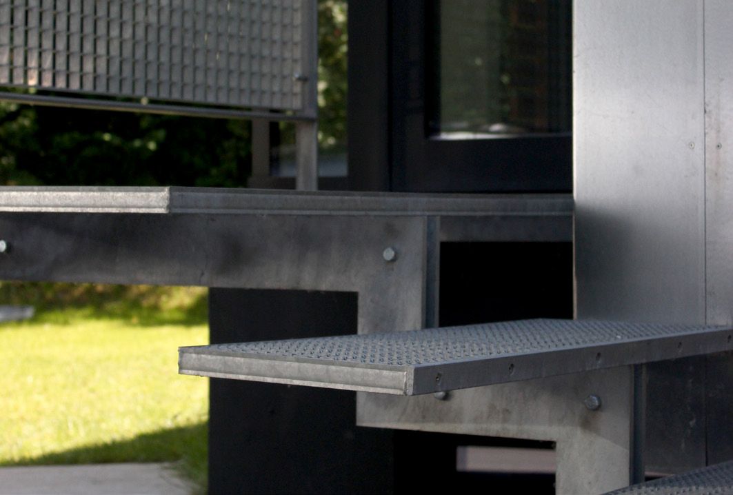 L’extension prolonge l’organisation existante d’une habitation des années 80 en proposant une cellule parentale en sous-sol et un espace de travail avec salon à l’étage. Employé pour les principaux éléments structurels hors sol, l’acier marque également les différents accès. Les éléments extérieurs sont galvanisés à chaud. A l’intérieur, l’acier est conservé dans son jus, simplement protégé d’un vernis mat.