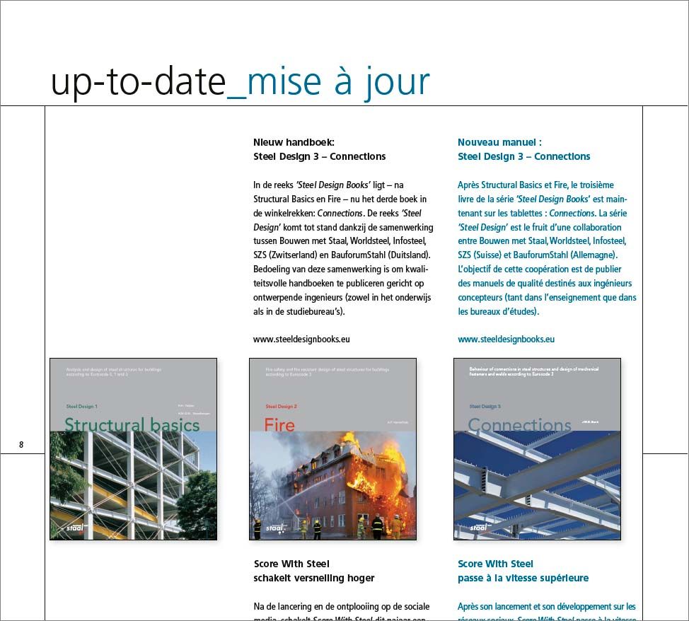 Nieuw handboek: Steel Design 3 – Connections / Score With Steel schakelt versnelling hoger / Milieu-impact van gebouwen berekenen – TOTEM / Brexit en CE-markering