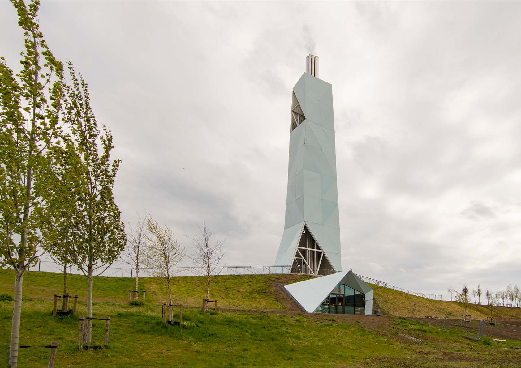 Een nieuwe 50 m hoge toren is het paradepaard van het duurzaam woonproject dat de stad Antwerpen in het kader van de klimaatdoelstellingen van 2050 ten zuiden van de Scheldekaaien ontplooit. Hij vormt het zichtbaar sluitstuk van het warmtenet dat de ganse wijk van verwarming moet voorzien.