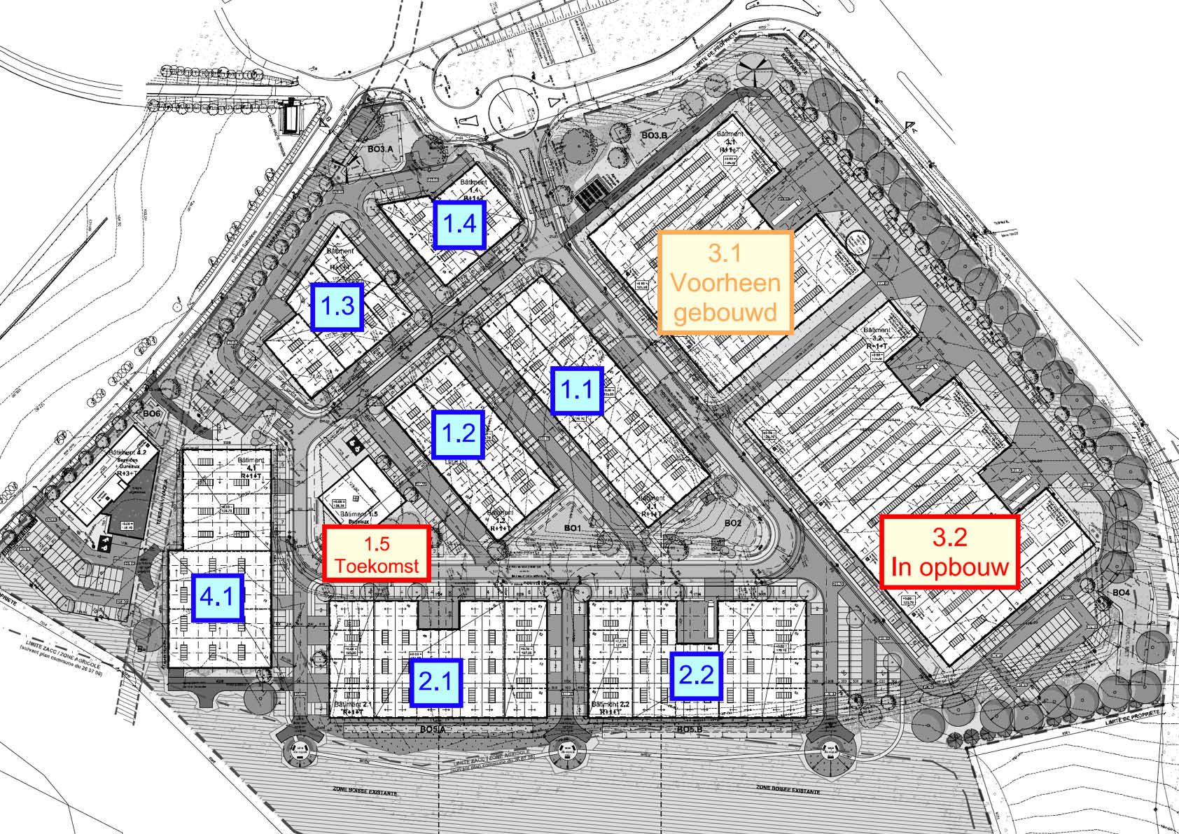 Te beginnen met fase 1, goed voor 43 KMO-units verdeeld over 4 gebouwen van in totaal 10.000 m², 400 ton staal, 4.600 m² sandwichpanelen. Gevolgd door fase 2, goed voor nog 12.500 m², 795 ton staal en 6.200 m² sandwichpanelen. Fase 3 is in uitvoering.